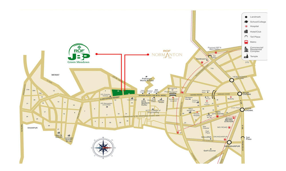 The project is developed by ROF Group, a reputed real estate developer known for their commitment to quality and timely delivery. The project is designed to offer residents a luxurious and comfortable lifestyle with a range of modern amenities such as water and electricity supply, sewage system, proper road connectivity, and 24x7 security systems. ROF JBP Green Meadows plots in Sector 35 & 36 Sohna are surrounded by lush greenery and offer a peaceful and serene environment away from the hustle and bustle of the city. The area has several parks and open spaces, making it an ideal location for those who love nature. The plots are also located in close proximity to several schools, hospitals, and shopping malls, making it an ideal location for families.